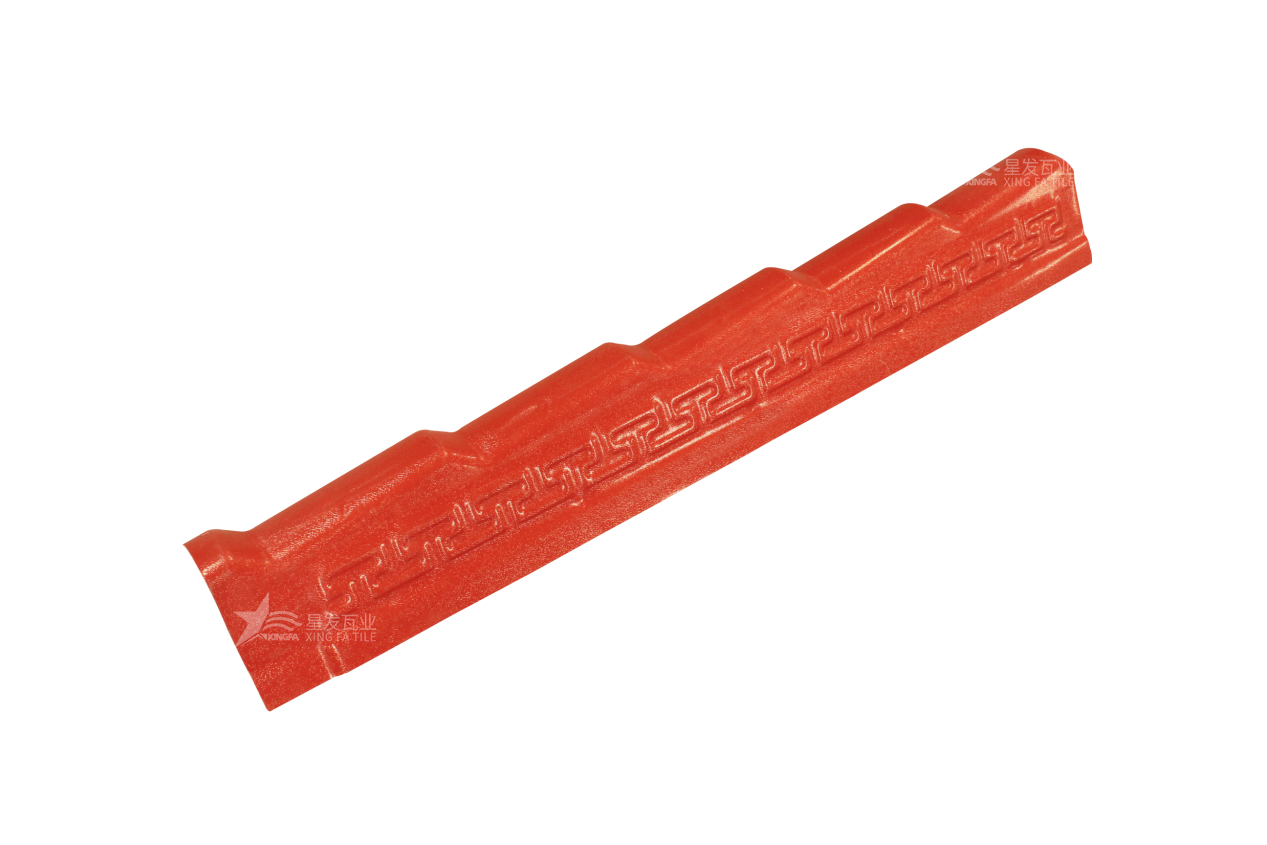 樹(shù)脂瓦配件-正脊瓦:用于覆蓋屋脊的樹(shù)脂瓦配件。它們與主瓦相匹配,保護屋頂的最高點(diǎn),確保防水和排水效果。